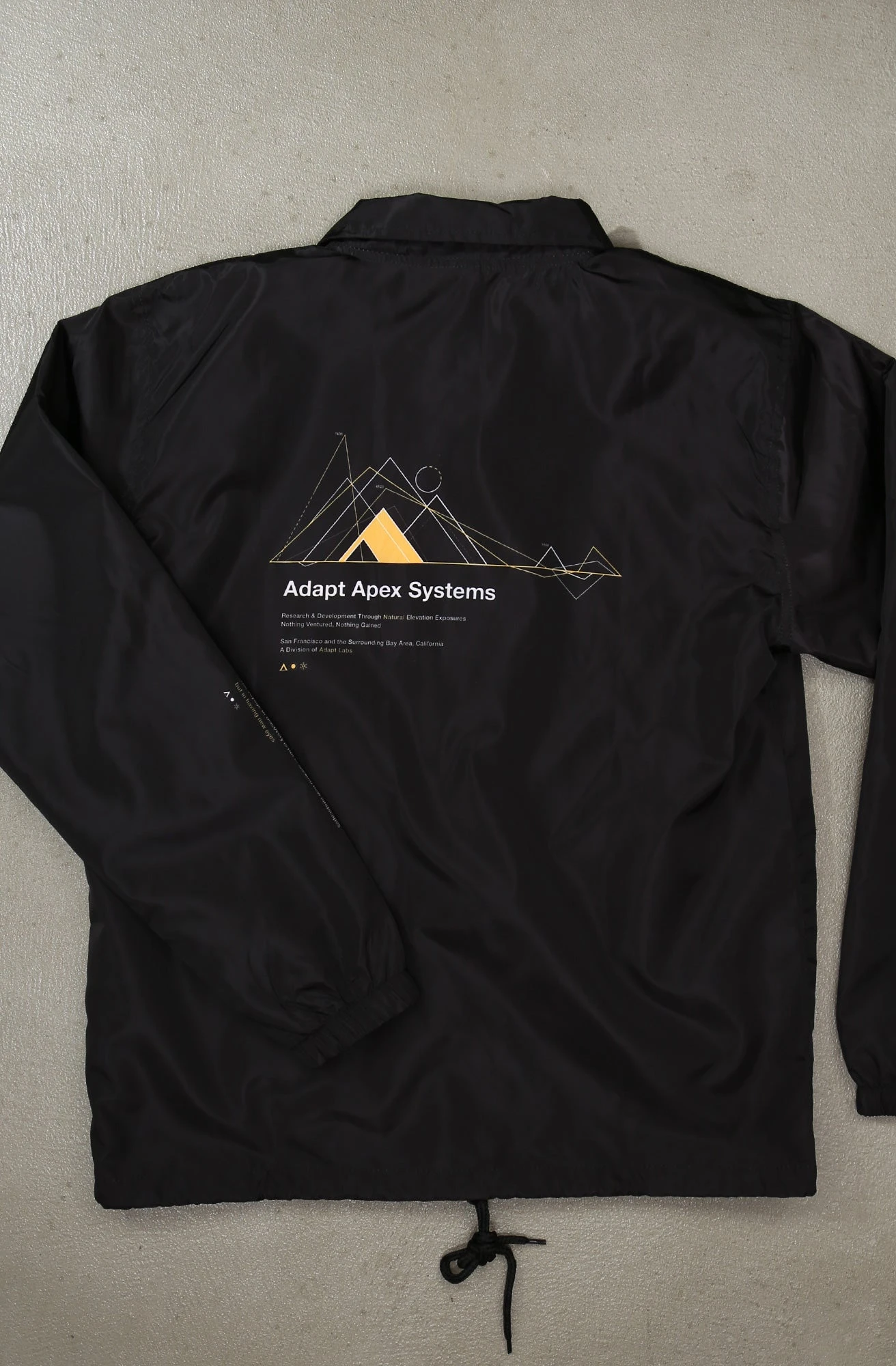 The Apex Systems Coach Jacket. Features side zippered pockets to keep your stuff secure, drawstring waist, smooth contrast lining, and snap front closure. 100% polyester construction. Standard fit, see size chart image for approximate measurements.