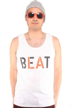 100% cotton. Our Men’s tanks are a comfortable, standard cut.