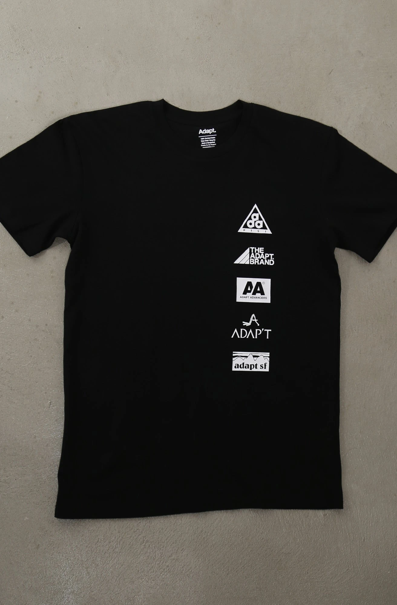 Elements. Featuring our premium A1 tee, a softer and slightly more fitted product. Unless you are between sizes, we recommend ordering the same size Adapt tee you would normally wear. 100% combed cotton.