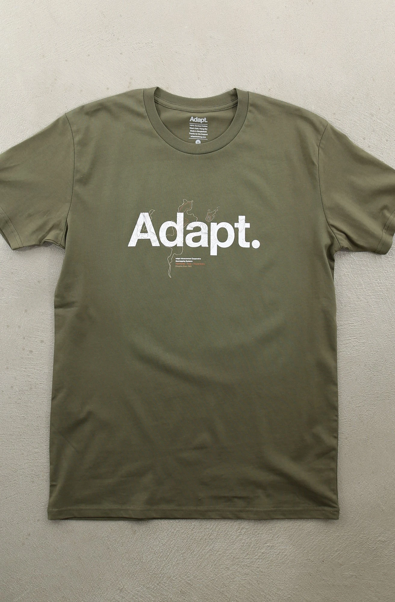 Topo – Elevating Since 2003. Featuring our premium A1 tee, a softer and slightly more fitted product. Unless you are between sizes, we recommend ordering the same size Adapt tee you would normally wear. 100% combed cotton.